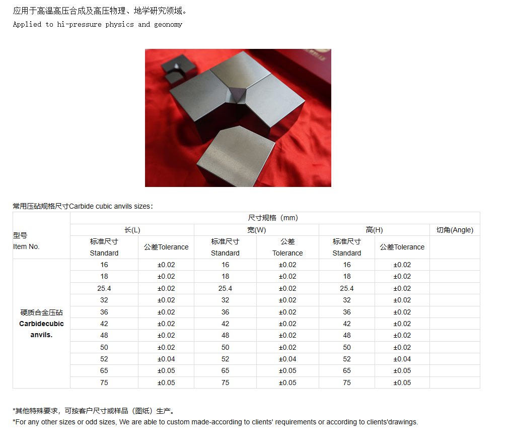 硬質(zhì)合金壓砧/Carbide cubic anvils.
